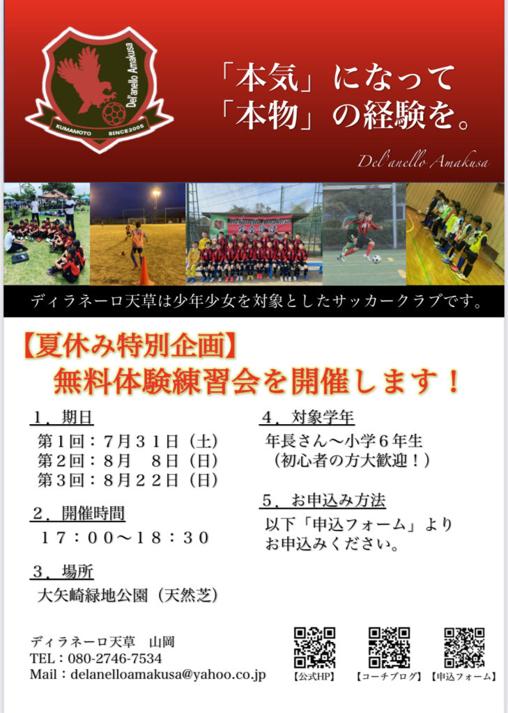 夏休み特別企画として、体験練習会を実施します。
