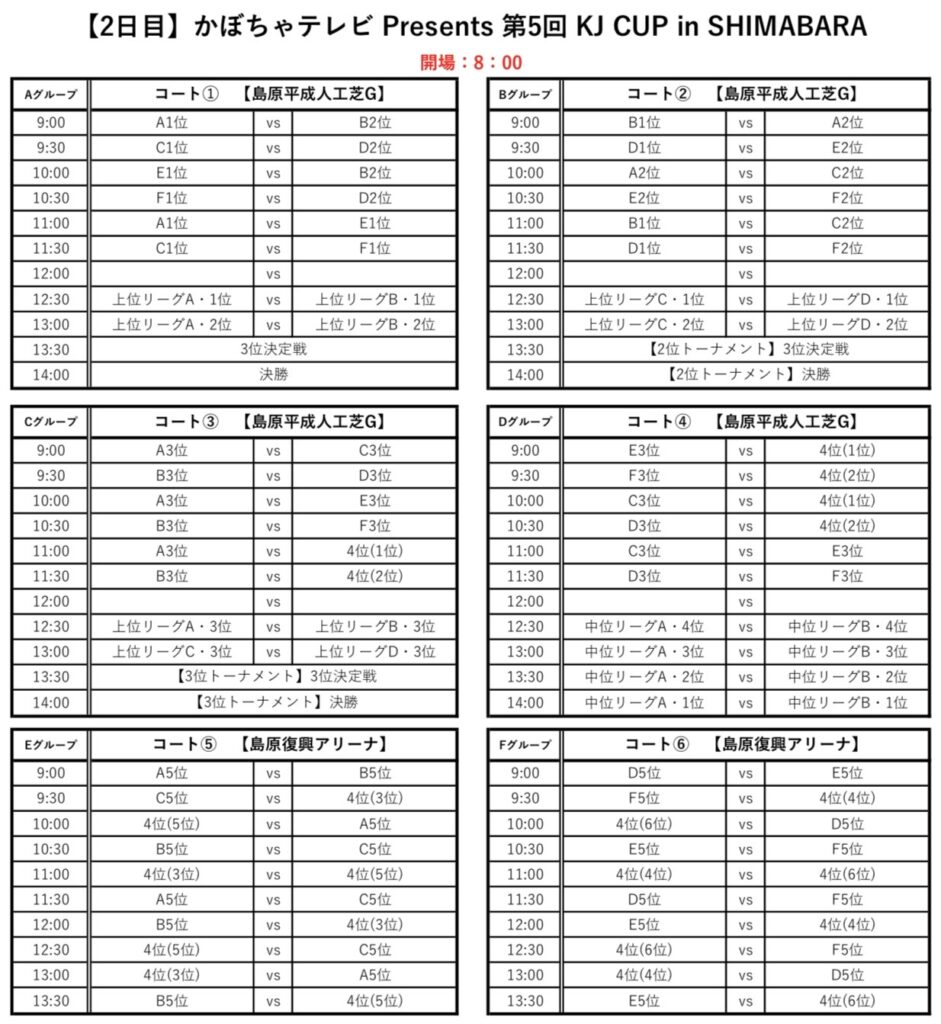 【2日目リーグ結果・決勝トーナメント組合せ】